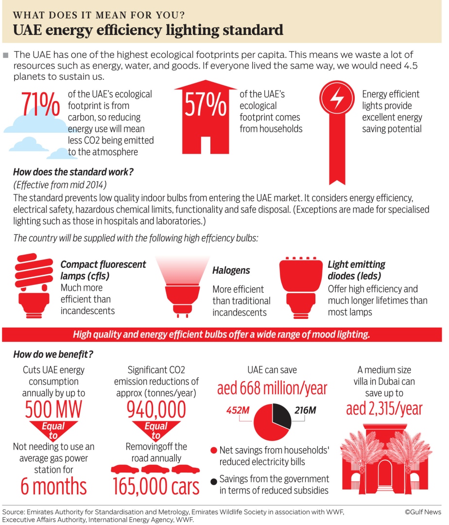 “UAE introduces indoor lighting standard: good for environment and good for economy,” WWF article on UAE lighting standard, 2014.