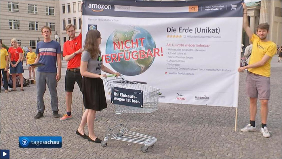And of course, we could never achieve such global awareness of Earth Overshoot Day without our amazing partners—both official and unofficial—including WWF offices around the world. We also would like to give a special shout-out to our wonderfully creative friends at Inkota and Germanwatch, whose spoof on Amazon shopping (pictured at top) landed on primetime TV news in Berlin.