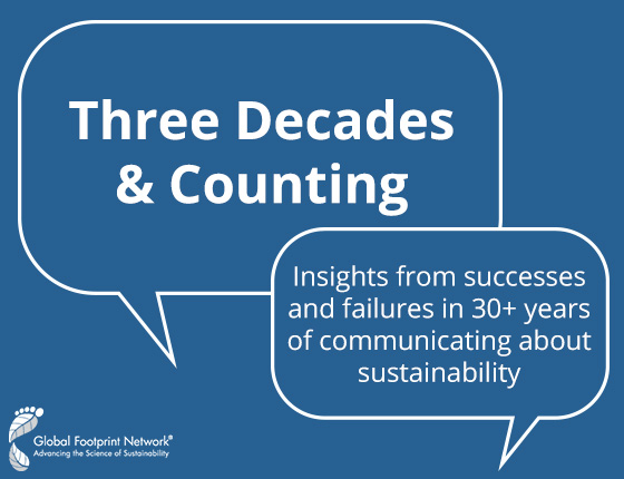 Global Footprint Network has been experimenting with communicating about resource constraints and biological regeneration since its inception. Dr. Mathis Wackernagel, its co-founder, has battled with this challenge even longer. In our blog series Three Decades & Counting, he reflects on our communications over the years and how we’ve learned from our successes and failures. Take a peek “behind the curtain” and share your thoughts and perspectives with us via the form at the bottom of each post.
