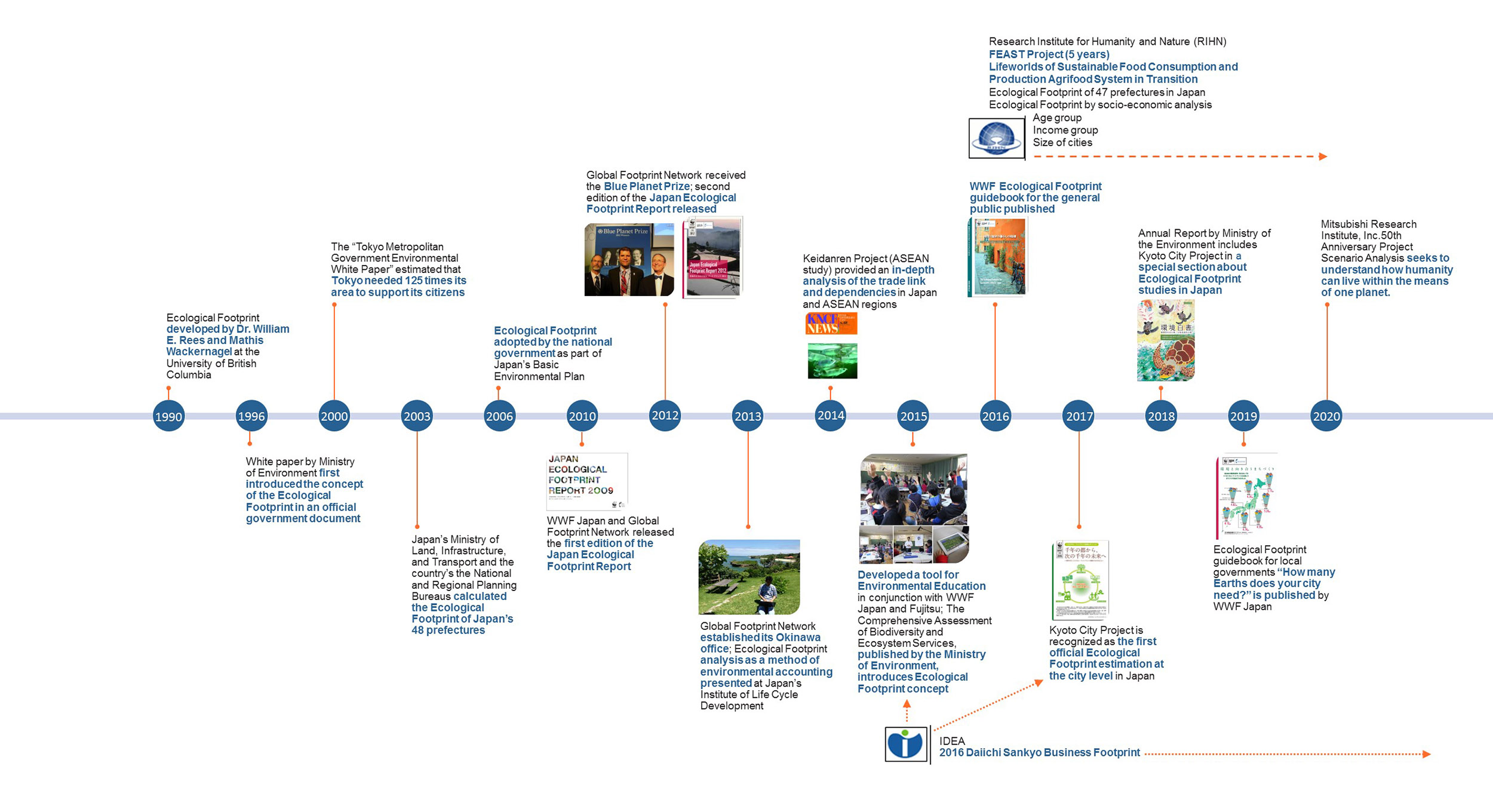 “The Ecological Footprint for Sustainable Living in Japan” (2014) was distributed to the general public to inspire individuals to change behavior, such as reducing food waste, and focus attention on policy change, such as a shift to renewable energy, to reduce the country’s Ecological Footprint.- In order to raise awareness about the Footprint as a policy-making tool, Global Footprint Network partnered with IDEA Consultants Inc. in 2014 and collaborated on six projects centered on incorporating the Footprint in business, policy-making, and education decisions.